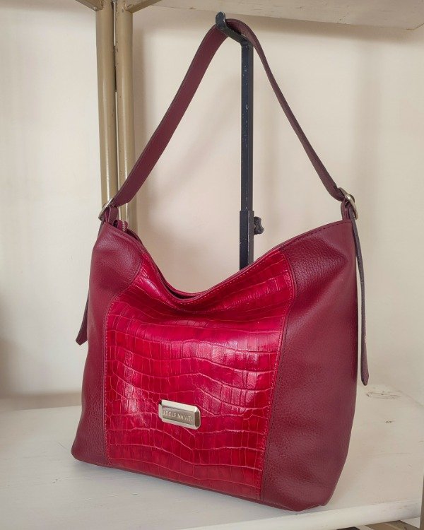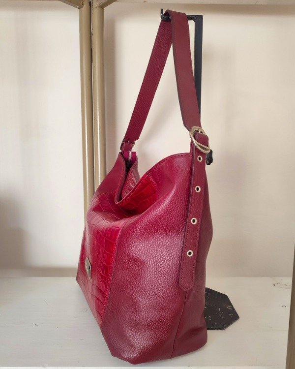 Bolso grande confeccionado en cuero vacuno flouter combinada con croco.
