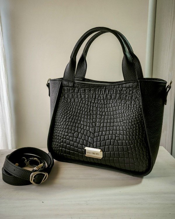 Bolso mediano de cuero vacuno calidad premium, con doble correa.